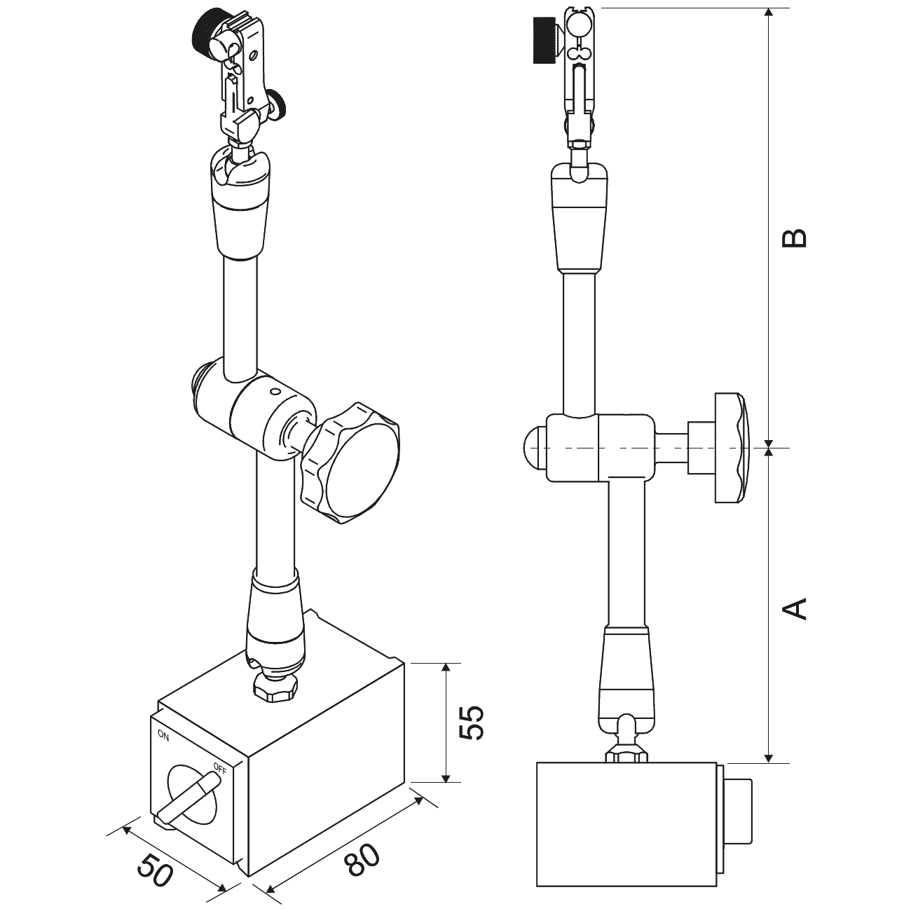 Hydraulically locking articulated magnetic dial gauge holder ALPA CD018