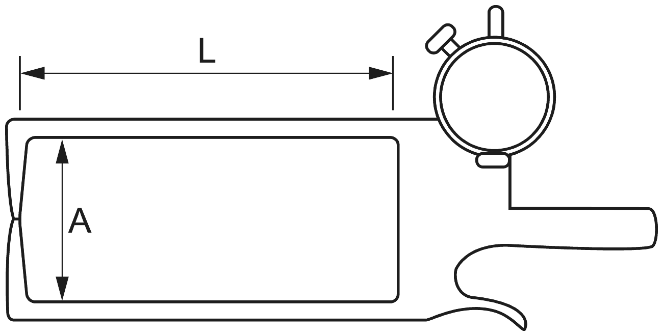 Characteristics- Caliper gauge for external, carbide measuring faces.