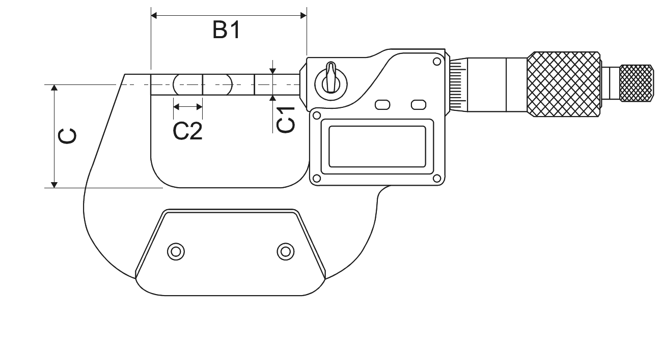 Blade measuring surfaces 0,75 x 6,50 mm, non-rotating spindle, painted frame, protected against dust, water resistant.
