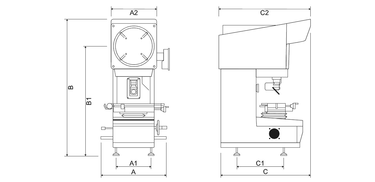 It is a profile projector that combines good build quality, ease of use and versatility. It is equipped with a finely sandblasted screen that guarantees a sharp, well-contrasted image. It also features a cross-hair reticle, graph stops, diascopic and episcopic illumination.